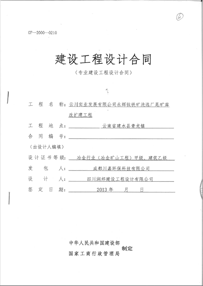 云川實業發展有限公司永輝鈦鐵礦洗選廠尾礦庫改擴建工程